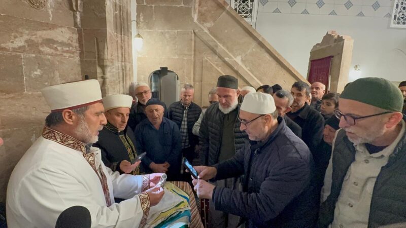 Sakarya’nın Taraklı İlçesinde, Kadir Gecesi dolayısıyla Sakal-ı Şerif ziyarete açıldı. Vatandaşlar, cam fanustaki Sakal-ı Şerif’i görmek için sıraya girdi.
