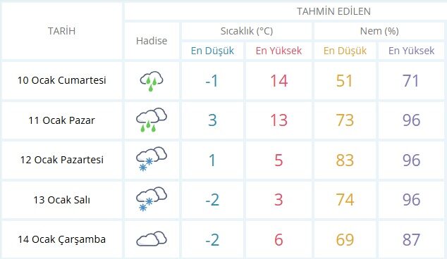 Sakarya’da yeni haftada kademeli olarak düşen hava sıcaklıkları 1 ila 5 derece arasında değişim göstermesi bekleniyor. Ayrıca şehirde Pazartesi ve Salı günleri kar yağışının da etkili olması bekleniyor.